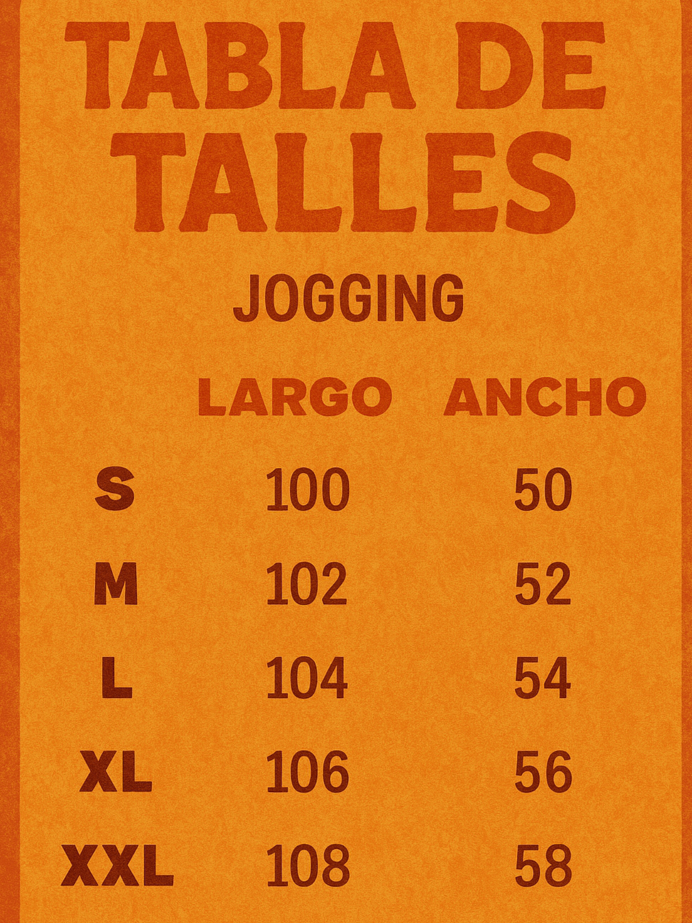 Talles disponibles: S, M, L, XL y XXL.