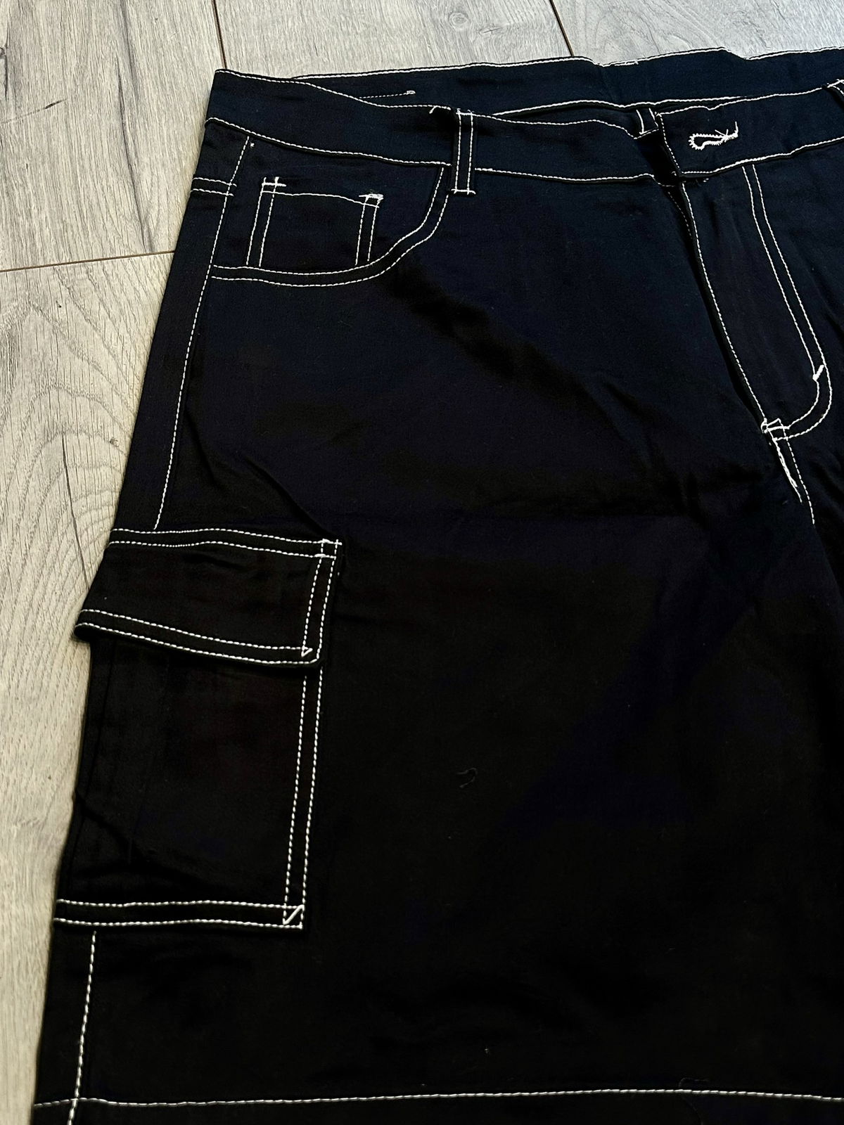 Confeccionada en gabardina liviana, combina un fit relajado con costuras blancas en contraste que le dan un toque street inconfundible. Bolsillos laterales amplios tipo cargo para funcionalidad real y estilo utilitario.