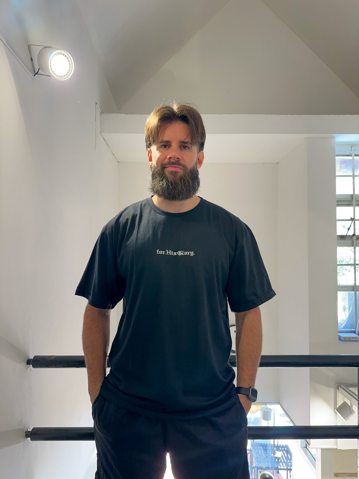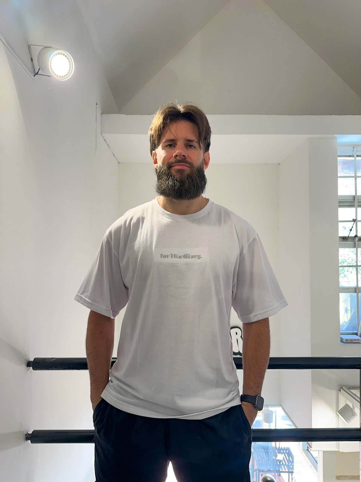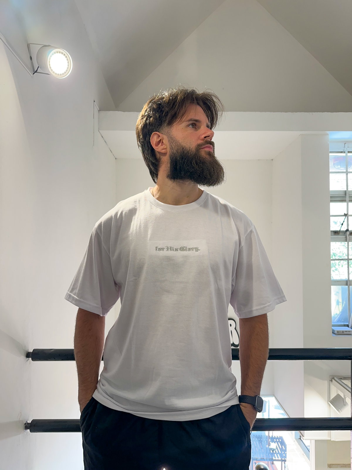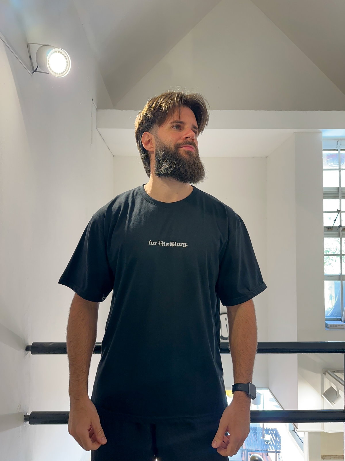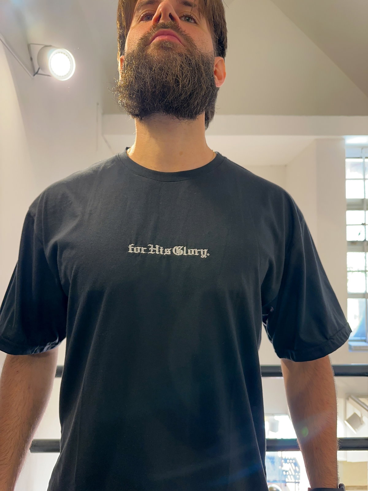 - Bordado: "For His Glory" Bordado en el centro del pecho. Espalda Lisa.