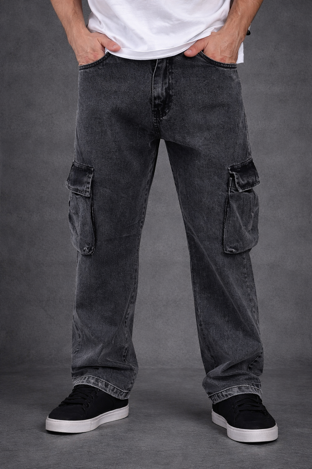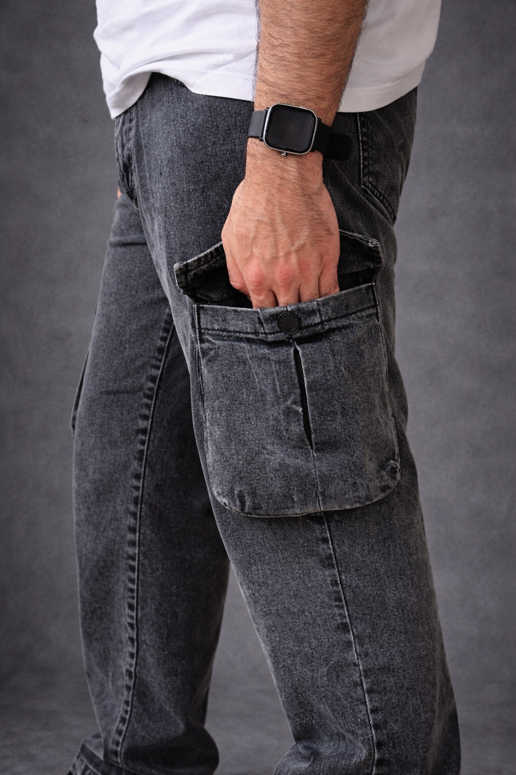 Pantalón de Jean rígido estilo Cargo.