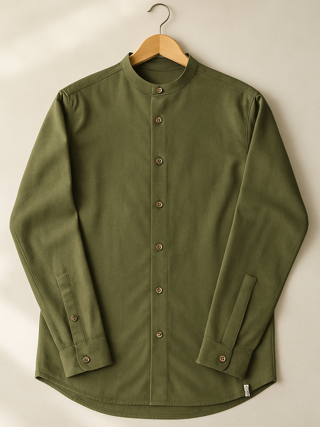 - Mangas largas con botones y cuello mao.
