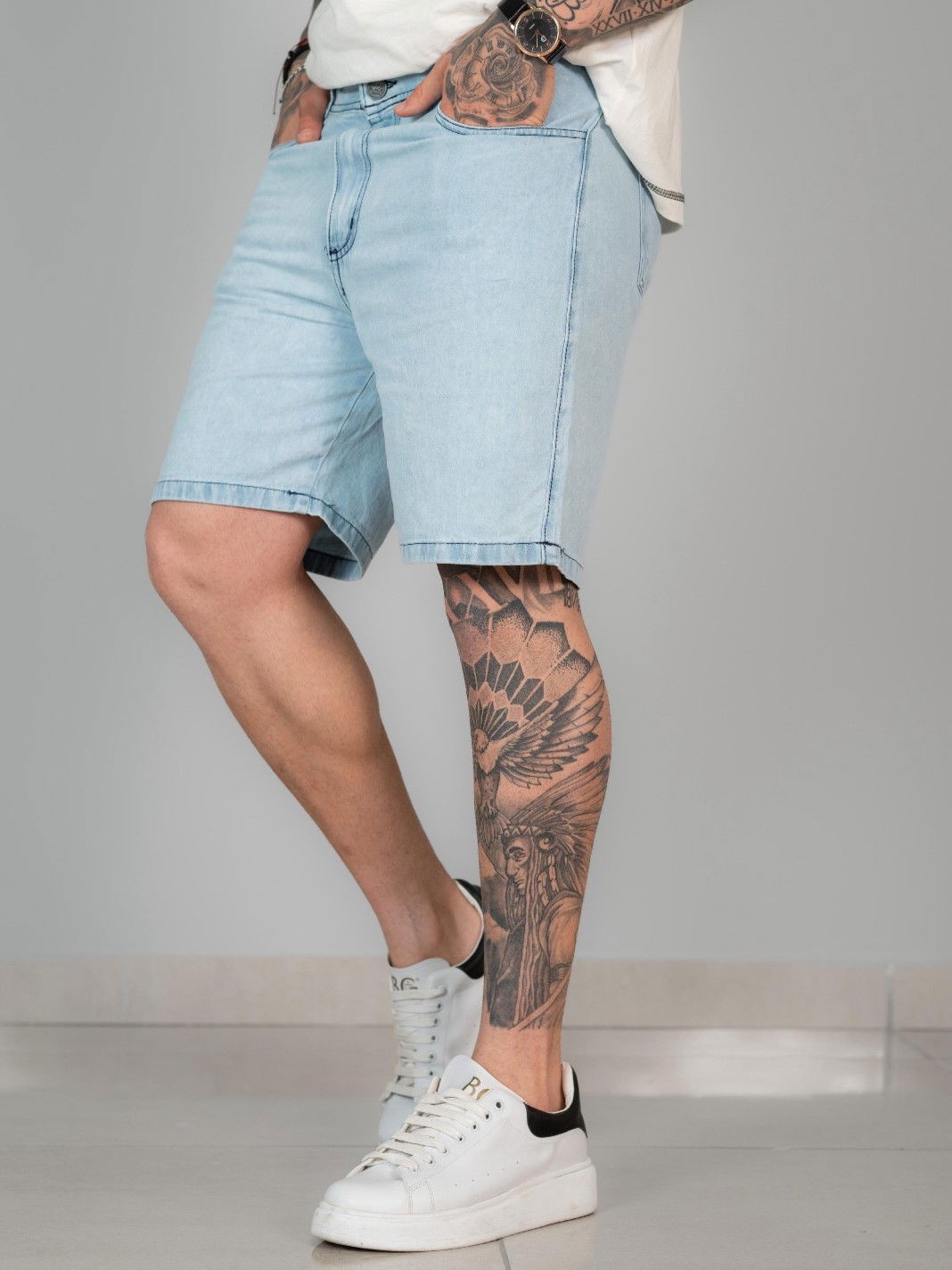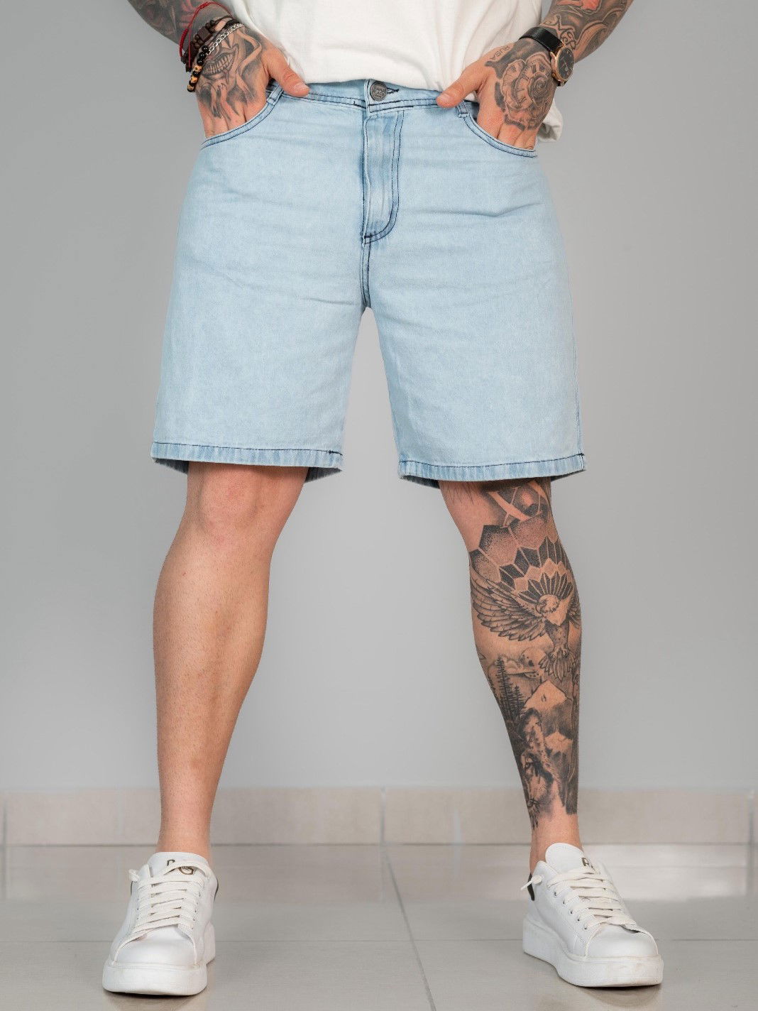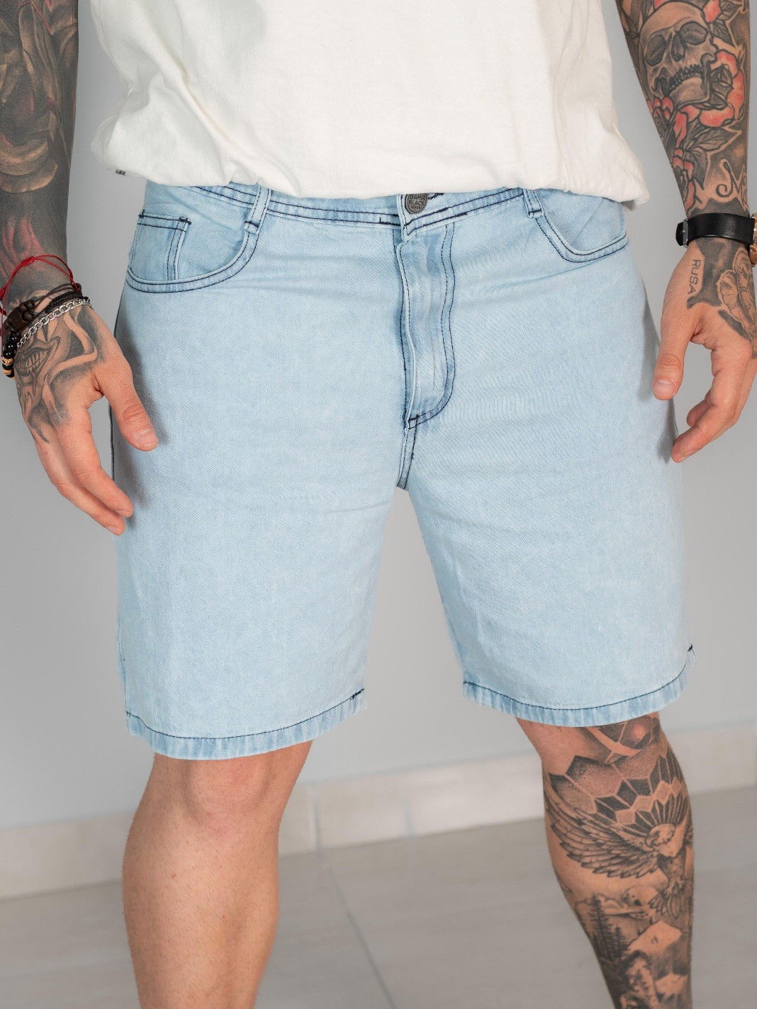 La Bermuda Sky Short es la versión más limpia y luminosa de la colección. Denim celeste claro, tacto liviano y un fit que equilibra comodidad y estilo. Minimalista pero con presencia, está pensada para quienes buscan una prenda versátil que se banque tanto la ciudad como la costa.